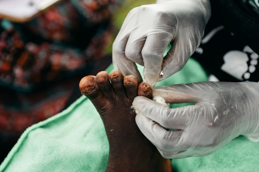 Imagine a tiny flea burrowing into your skin, causing unbearable itching and pain. It's like having a constant, nagging annoyance that won't let you sleep or focus on work or school. Now, think of this happening not just once but multiple times, to the point where walking becomes a struggle, and your feet start to look and feel different, with nails gone and skin damaged.
