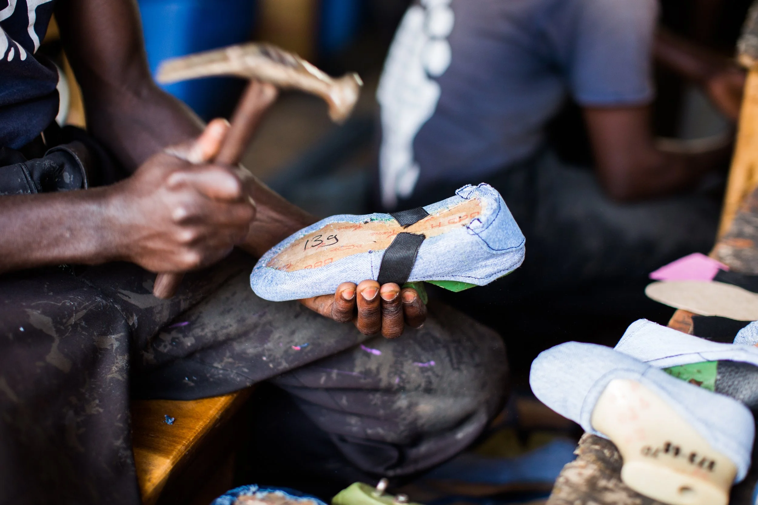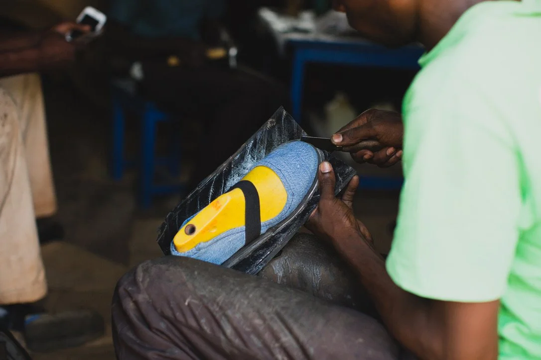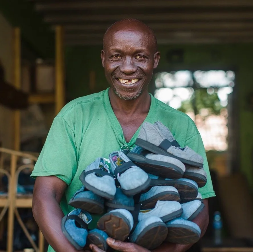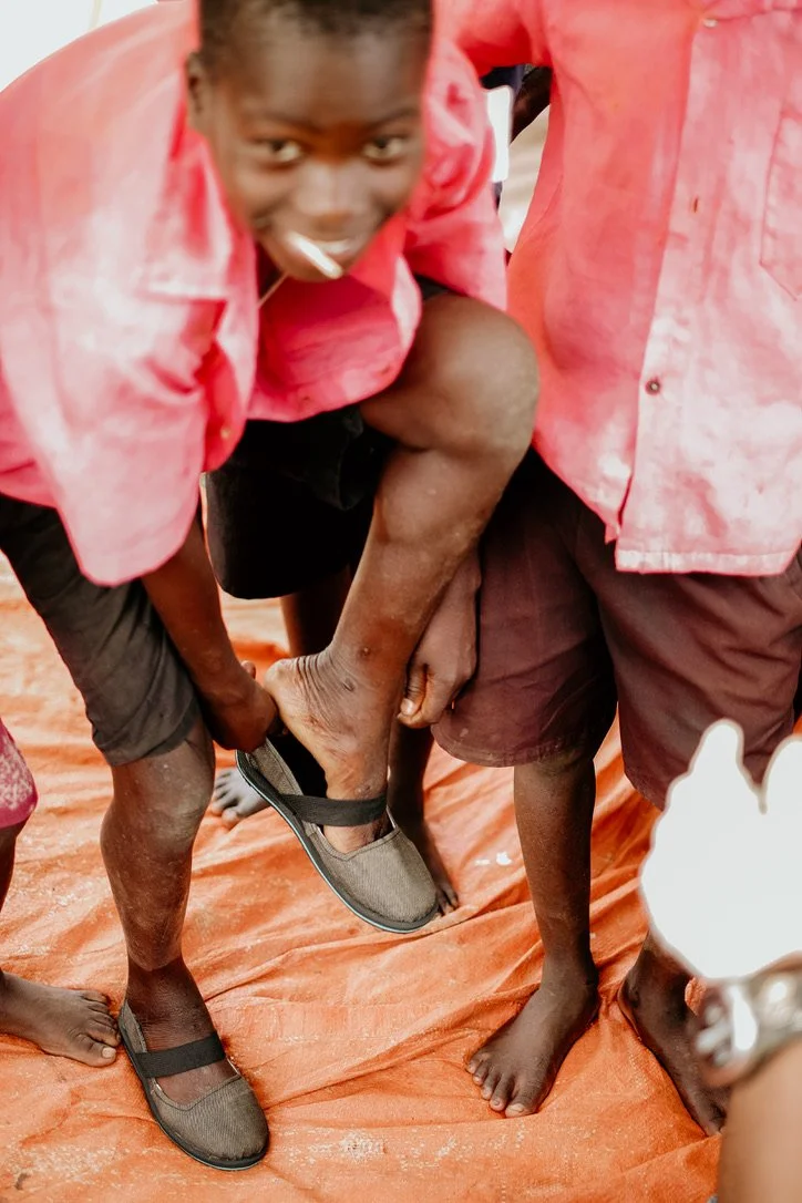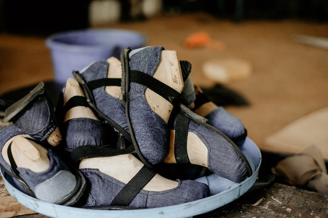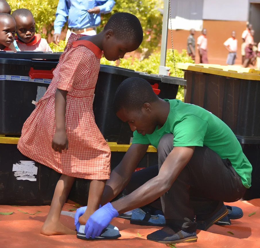 At Sole Hope, old jeans embark on an extraordinary journey of transformation. Volunteers at shoe-cutting parties cut and prepare these jeans, which are then sent to Uganda. There, skilled artisans are paid a fair wage to turn them into durable shoes with recycled tire soles. These shoes aren't just footwear; they're a shield against disease and a step towards a healthier future. Given out at our foot-washing and jigger removal clinics and our residential facility, each pair symbolizes hope, protection, and a commitment to healthier lives. From simple denim to a vital part of our mission, these shoes represent the power of collective effort in forging new beginnings.